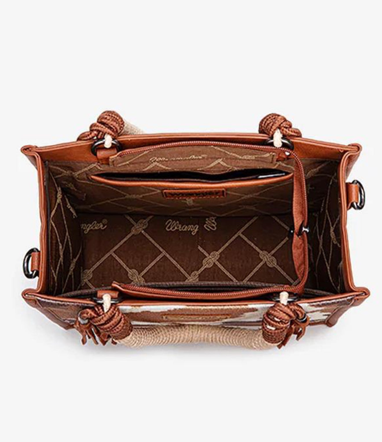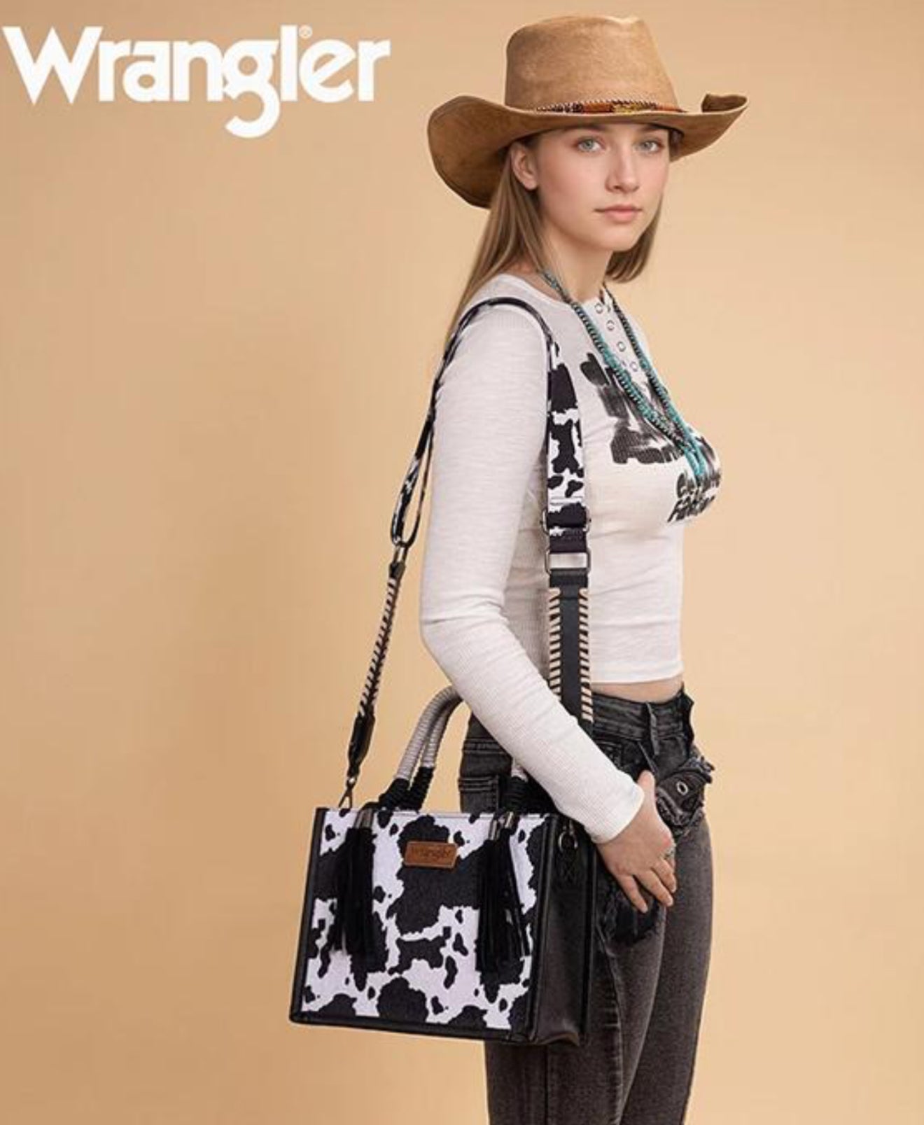Wrangler Cow Print Rope Handle Tote Crossbody Bag