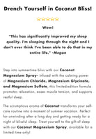 Step into summertime bliss with our Coconut Magnesium Spray- Infused with the calming power of Magnesium Chloride, Magnesium Glycinate, and Magnesium Sulfate, this limited-edition formula promotes relaxation, eases muscle tension, and supports restful sleep.