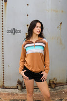Built for comfort and made to stand out, the Herdsman Half Zip features a warm camel base with a classic serape print across the top in brown, turquoise, and cream. The half zip design makes it easy to layer, while the soft yet durable fabric is ready for long days, cool nights, and everything in between.