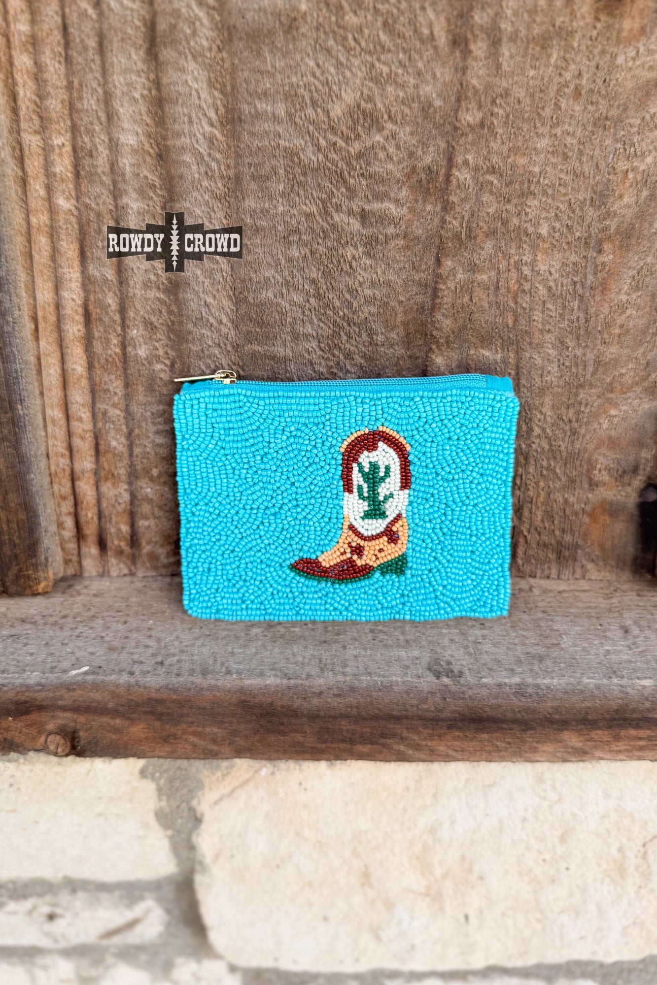 Hey, Cowboy! If you're looking for the cutest cosmetic bag this side of the Rio Grande, you need the Hey Cowboy Cosmetic Bag. With a stunning beaded turquoise background and a detailed beaded cowboy boot, it's sure to be a hit.