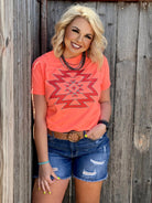 Puff is IN right now— featured here in a cute Aztec design on coral!