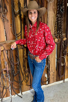 Add a playful touch to your outfit with the Bandana Babe Button Up. This soft, red bandana-inspired shirt features comfortable fabric and charming pearl snap buttons for easy wear. Perfect for fun, casual days, it combines style and comfort effortlessly.
