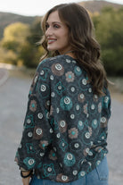 Elevate your style with the Break Shot Blossom Top, featuring a striking blend of eight-ball motifs, intricate tooled floral designs, and subtle black-on-black check patterns. This long sleeve top combines classic edge with artistic detail, perfect for making a bold yet refined statement. Its unique design pairs effortlessly with your favorite pieces, adding a touch of personality and sophistication to any outfit. Embrace standout style that speaks to your confidence and creativity.