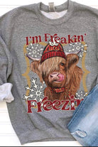 This I'm Freakin Freezing sweat shirt is the perfect way to keep warm! Crafted with an ultra-soft fleece lining and a unisex fit, it's sure to keep you cozy. Plus, the highlander-style cow print adds a bit of trendy flair, ensuring you look great while staying warm! So why wait? Get your I'm Freakin Freezing sweatshirt today!