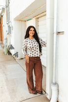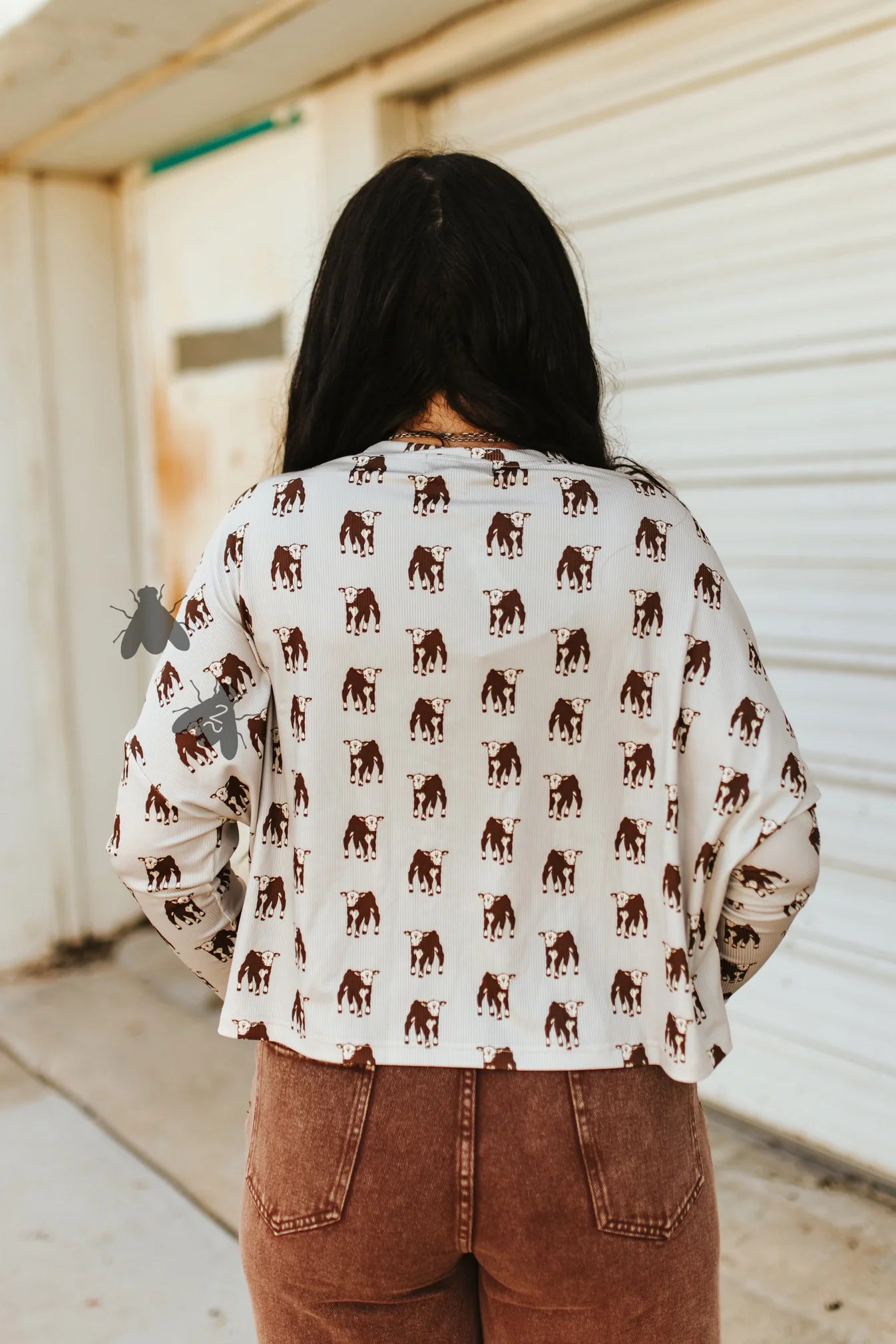 This elegant top features a modest, t-shirt-length cut that's subtly shorter for a refined silhouette. Crafted from a soft, slightly ribbed fabric, it offers exceptional comfort and a delicate texture. The charming calf details add a touch of playful sophistication, making this piece a uniquely stylish addition to your wardrobe.
