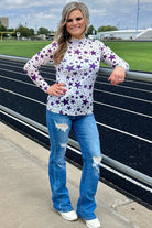 Show your team spirit with this playful black mesh top adorned with shimmering stars. Lightweight and breathable, it’s perfect for cheering on your favorite team in style while staying cool and comfortable. Add a fun, sparkling touch to your game day outfit!