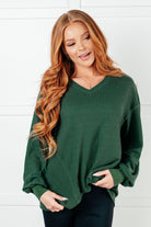Our Good Things Are Coming V-Neck Top in Green is serving up some serious style with its v-neckline and drop shoulder silhouette. The banded sleeve cuff adds a nice touch, while the scooped asymmetrical hemline keeps things interesting. Plus, the faux tag detail is a quirky detail. Good things are definitely coming with this top.