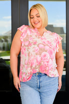 Lizzy Flutter Sleeve Top in Ivory and Pink Muted Floral