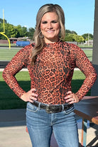 Elevate your game-day look with the Sideline Spirit Orange Mesh Top. Crafted from breathable mesh fabric, this top keeps you cool and comfortable while showcasing a bold leopard print that stands out in any crowd. Perfect for layering or wearing solo, it combines style and spirit effortlessly, making it a must-have for fans who want to shine on and off the sidelines.