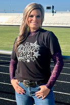 Elevate your game-day look with the Sideline Spirit Purple Mesh Top. Crafted from breathable mesh fabric, this top keeps you cool and comfortable while showcasing a bold leopard print that stands out in any crowd. Perfect for layering or wearing solo, it combines style and spirit effortlessly, making it a must-have for fans who want to shine on and off the sidelines.