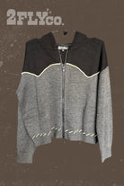 The Silverado Jacket combines cozy knit comfort with stylish two-tone design and a distinctive western rope detail for a refined, unique look. Perfect for dressing up or keeping it casual, this hooded zip jacket offers versatile elegance with a subtle nod to classic Western flair. Experience sophistication and effortless style in one exceptional piece.