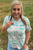 This isn't just another t-shirt. The rich cream base creates an elegant canvas for the striking turquoise toile pattern that commands attention wherever you go. While others settle for ordinary, you'll stand out with authentic western style that speaks to your unique personality.