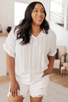 Be effortlessly stylish with the So Far Away Striped Top! Featuring a classic faux button neckline, fold over collar, cuffed dolman sleeves, and a gathered back seam for a comfortable fit. The casual stripes complete the look for an effortless, yet sophisticated style!