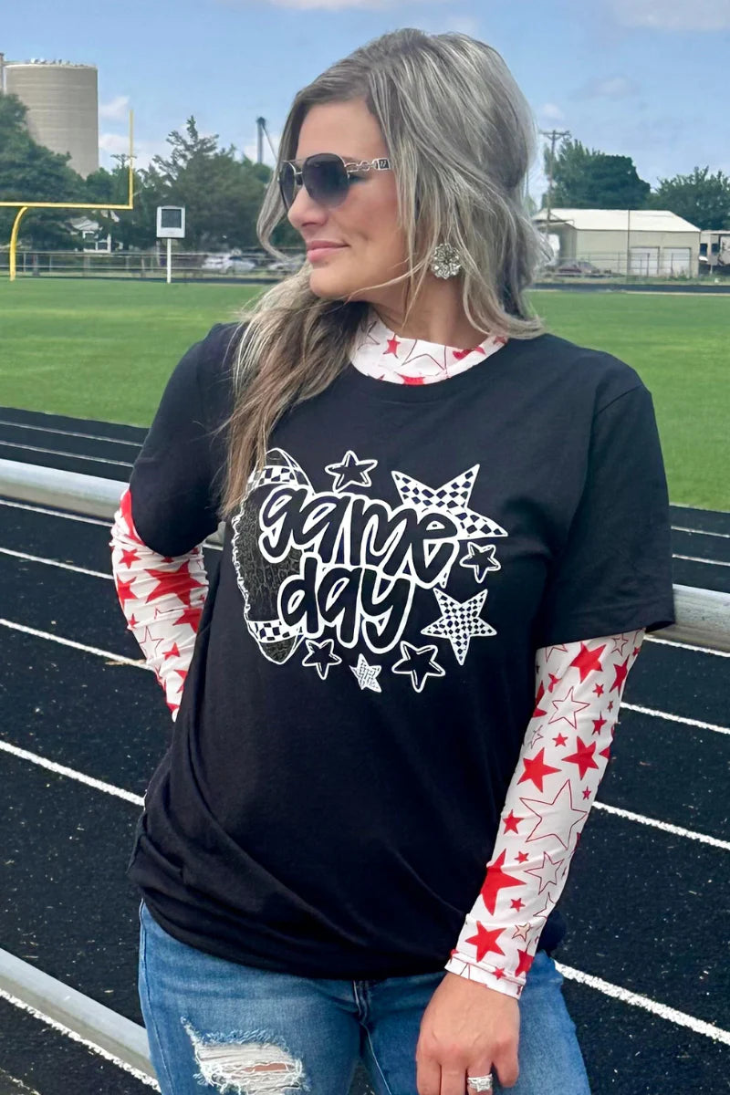 Doodle Me In Lettuce Round Neck Top in Black and White