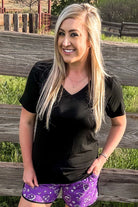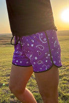 Unleash your inner bandana babe with these cute and fun purple shorts. Featuring front pockets and a stretchy, comfy design, these shorts are perfect for any adventure. So go ahead, make them your go-to bottoms and channel your inner badass babe.