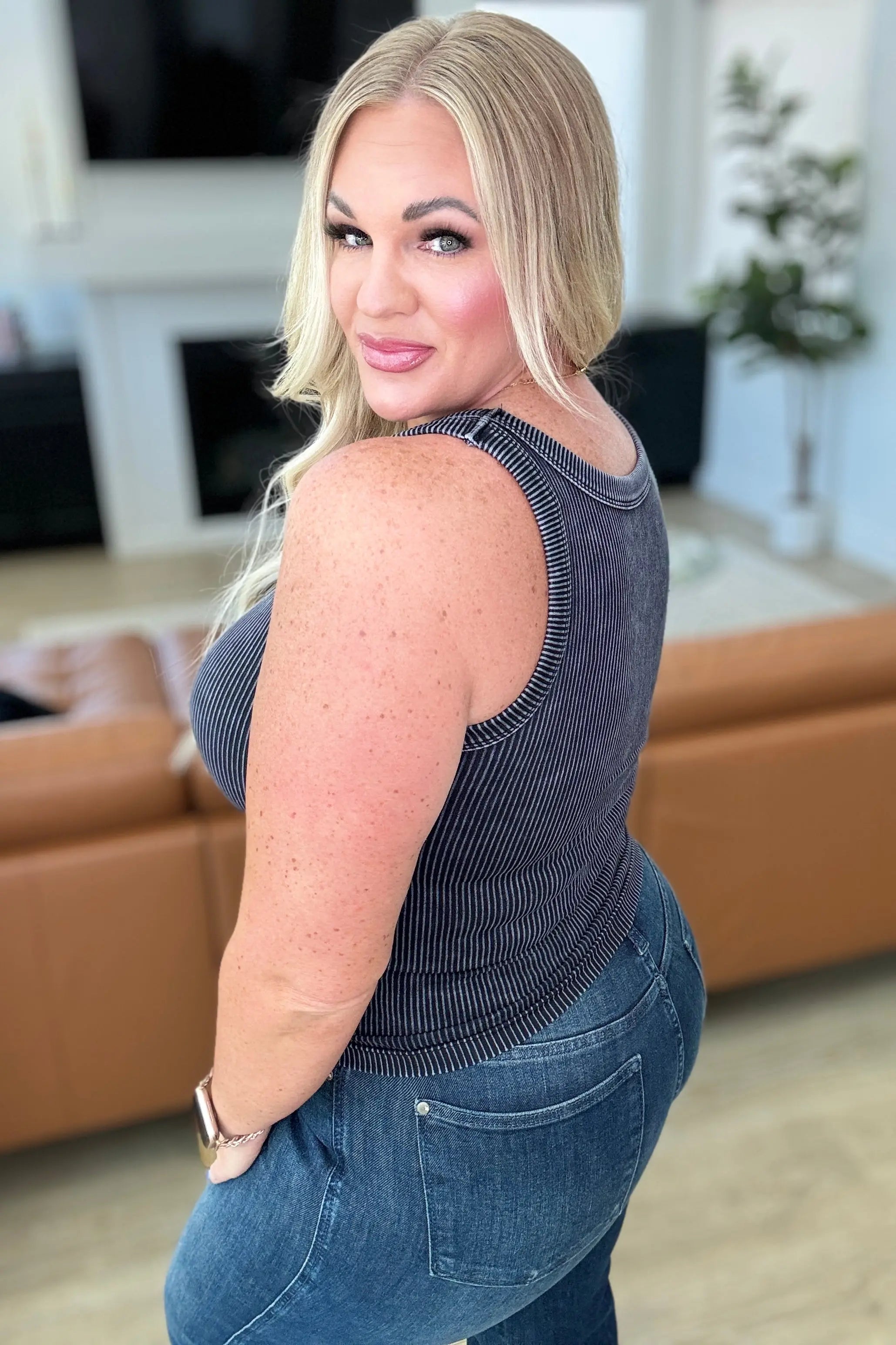 Embrace the journey and add some fun to your wardrobe with the Go the Distance Ribbed Tank - the perfect top for adventurous souls! With its reversible design, you can mix and match to create endless looks. Plus, the mineral washed fabric and ribbed texture add a unique touch, while the high stretch ensures a comfortable fit.