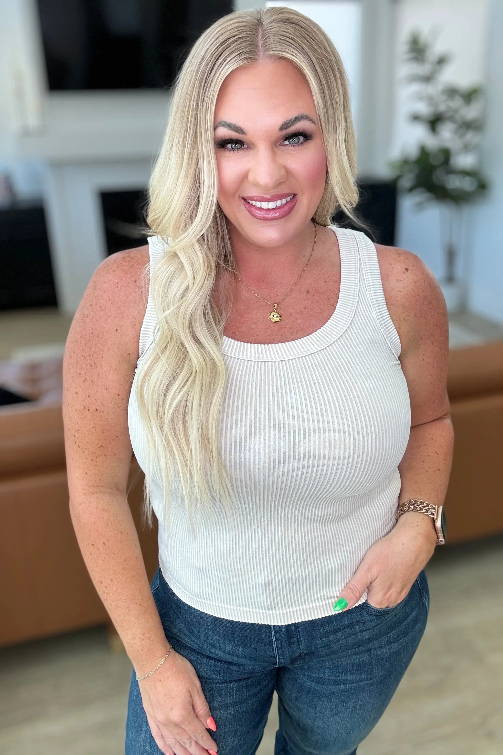 Go the Distance Ribbed Tank in Sand Beige