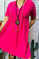 "Be bold and beautiful with this hot pink short sleeve dress. Perfect for any occasion, its vibrant color will make you stand out and its short sleeve design will keep you cool and comfortable. Add a touch of excitement to your wardrobe with this stunning dress!"