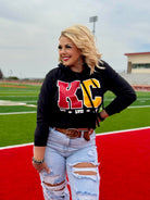 Shown on a black Gildan racerback tank top, a Bella Canvas charblack t-shirt, a Next Level black cropped hoodie, and a black Cotton Heritage crew neck sweatshirt.