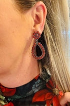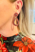 Add a pop of playful color with our La Maya Earrings featuring a red daisy stud and a dangling red oval shape adorned with tiny red stones. Perfect for adding a touch of quirky charm to any outfit! (Don't miss out on these red hot earrings!!!)