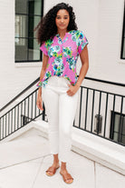 Lizzy Cap Sleeve Top in Coral and Blue Floral