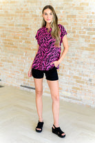 Lizzy Cap Sleeve Top in Pink and Black Zebra