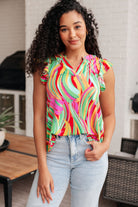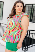 Lizzy Flutter Sleeve Top in Green Multi Abstract Stripe