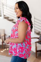 Lizzy Flutter Sleeve Top in Lavender and Hot Pink Filigree