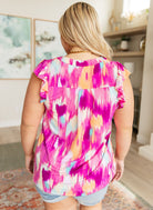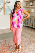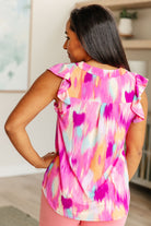 Lizzy Flutter Sleeve Top in Pink and Lavender