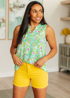Add a touch of luxury to your wardrobe with the Lizzy Tank Top. Made with Bulgari fabric, this tank top features a flattering V-neck and a stylish tank top silhouette. Perfect for adding a pop of playful pattern to any outfit.