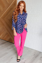 Lizzy Top in Navy and Magenta Petite Floral