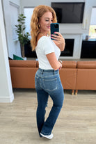 The Mila Mid Rise Distressed Bootcut Jeans from Judy Blue offer a stylish and versatile option for any fashion-forward individual. These jeans feature a mid-rise fit and dark wash, as well as distressed detailing for a touch of edge. With 4-way stretch and a bootcut silhouette, these jeans offer both comfort and style. Paired with cowboy boots or sneakers, these jeans are the perfect addition to any wardrobe.