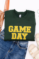 PREORDER: Embroidered Glitter Game Day Sweatshirt in Forest Green/Golden Yellow