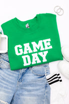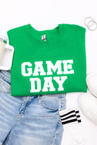 PREORDER: Embroidered Glitter Game Day Sweatshirt in Kelly Green/White