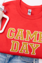 PREORDER: Embroidered Glitter Game Day Sweatshirt in Red/Golden Yellow