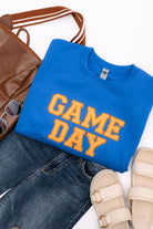 PREORDER: Embroidered Glitter Game Day Sweatshirt in Royal Blue/Orange