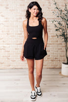 Experience ultimate comfort and style with our Raising Heart Rate Cutout Runsie! Made with brushed microfiber for a soft feel, this piece features a square neckline and crossed back straps for a feminine touch. The cutout detail adds a trendy element, while functional side pockets provide convenience. Perfect for workouts or everyday wear.