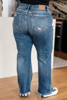 Your best outfits start with the Rose High Rise 90's Straight Jeans! Featuring a stretchy, dark wash denim that shapes a high rise waist with five pocket cut and zipper fly. 90's Straight cut pant legs end with chewed hems with distressing at the knees.
