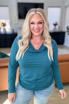 Ruched Cowl Neck Top in Dark Teal