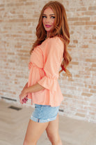 Add a touch of sweetness to your wardrobe with this beautiful Sherbet Swiss Dot Top. Featuring soft, adjustable ruching, a romantic V-neck, and unique babydoll style, this top is sure to become one of your favorite looks. The bell sleeve and stretchy fabric create an air of elegance, making this top a must-have for any fashionista!