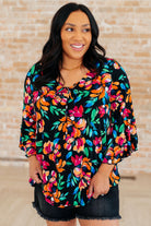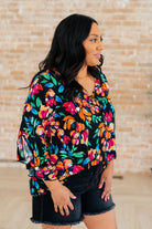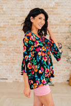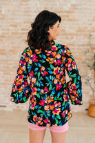 Willow Bell Sleeve Top in Black and Emerald Floral