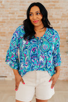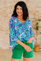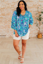 Willow Bell Sleeve Top in Emerald and Royal Paisley