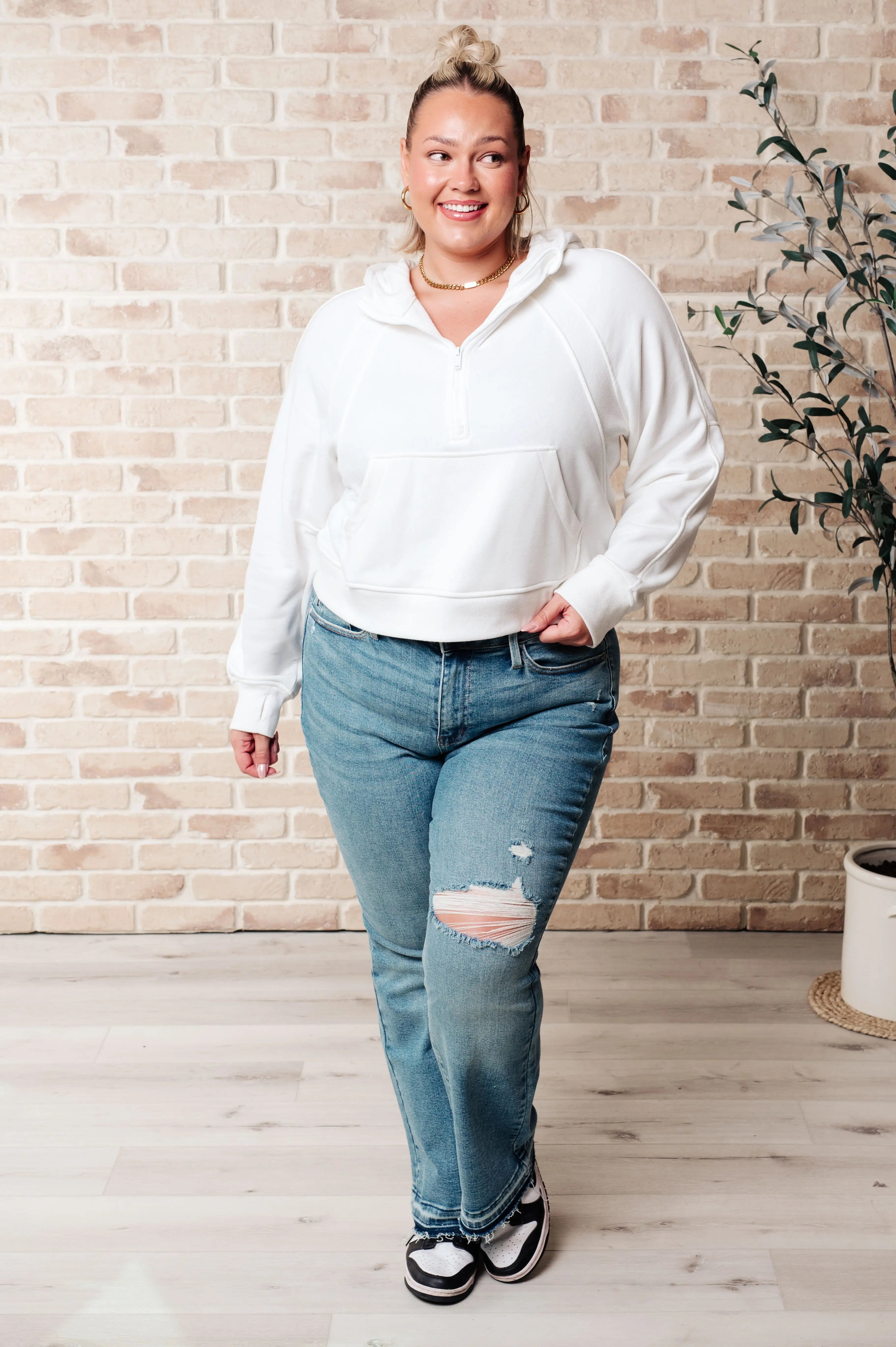 Working Up A Sweat Hooded Pullover in Off White