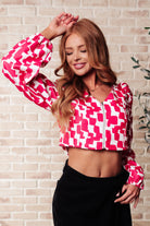 Zola Zip Up Abstract Print Crop Top in Magenta